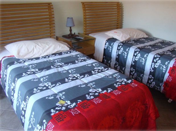São 6 apartamentos tipo suíte com duas camas de solteiro.